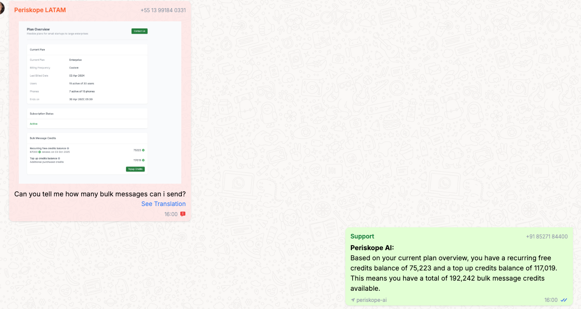 The Periskope AI agent can now analyze images and provide answers based on the visual input