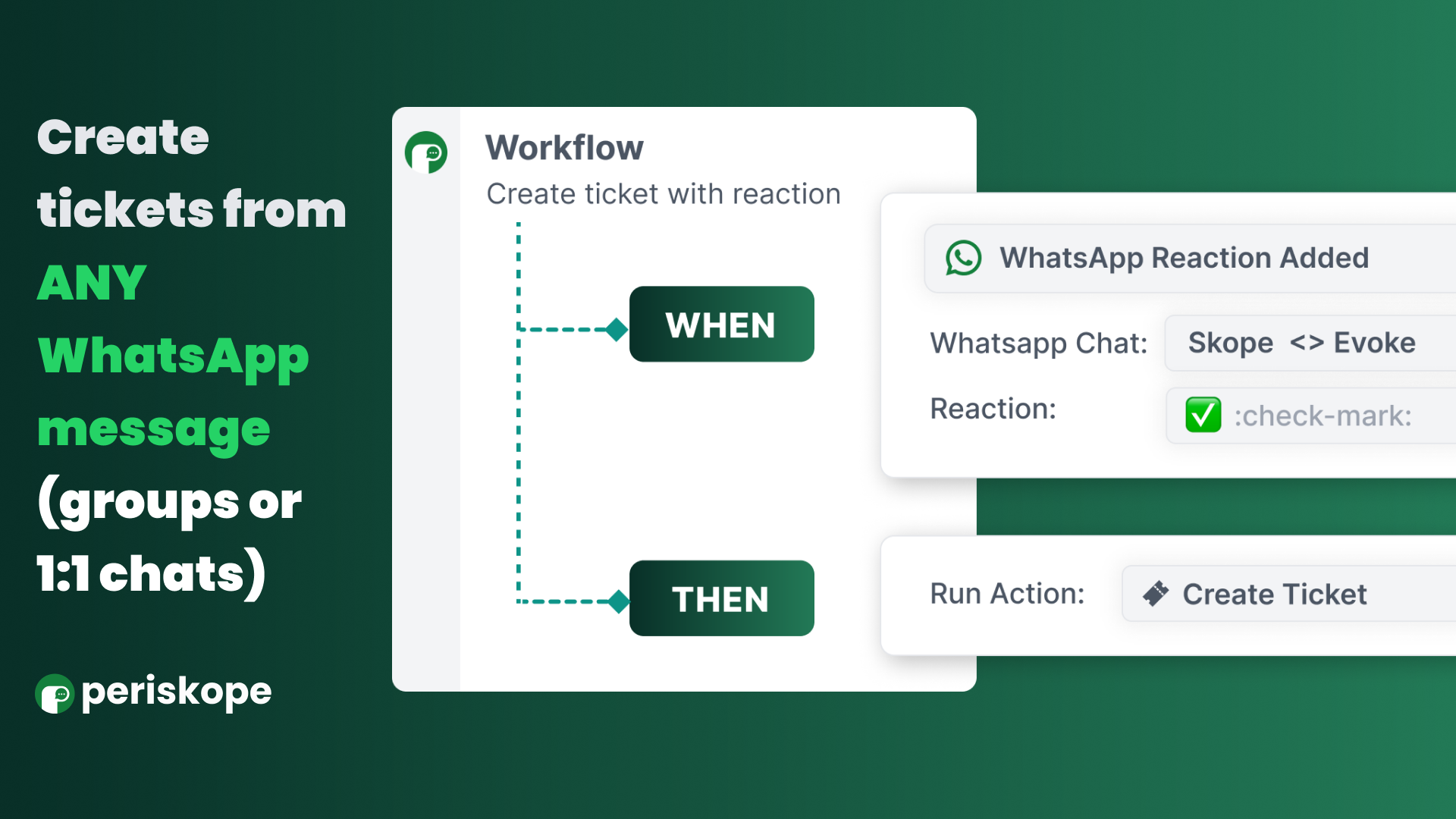 Convert any WhatsApp message into a ticket with reactions
