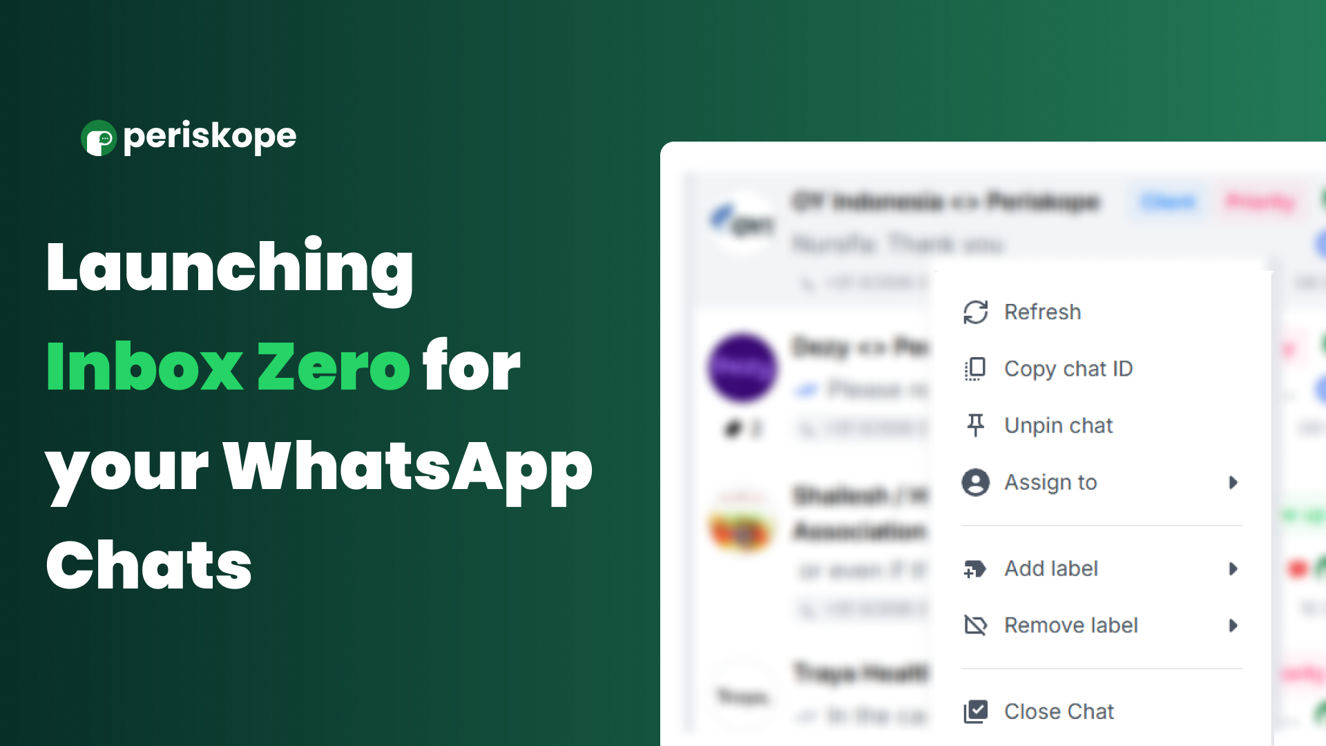 The Close Chats or Inbox Zero feature on Periskope is here to simplify your workflow and help you focus only on conversations that need your attention. With this feature, chats you’ve addressed are tucked away, but they’ll pop back into view if there’s a new message—ensuring you never miss anything important.