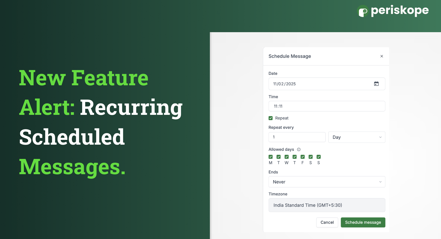 It’s raining new features at Periskope! We’re thrilled to introduce one of the most awaited updates—Recurring Scheduled Messages!