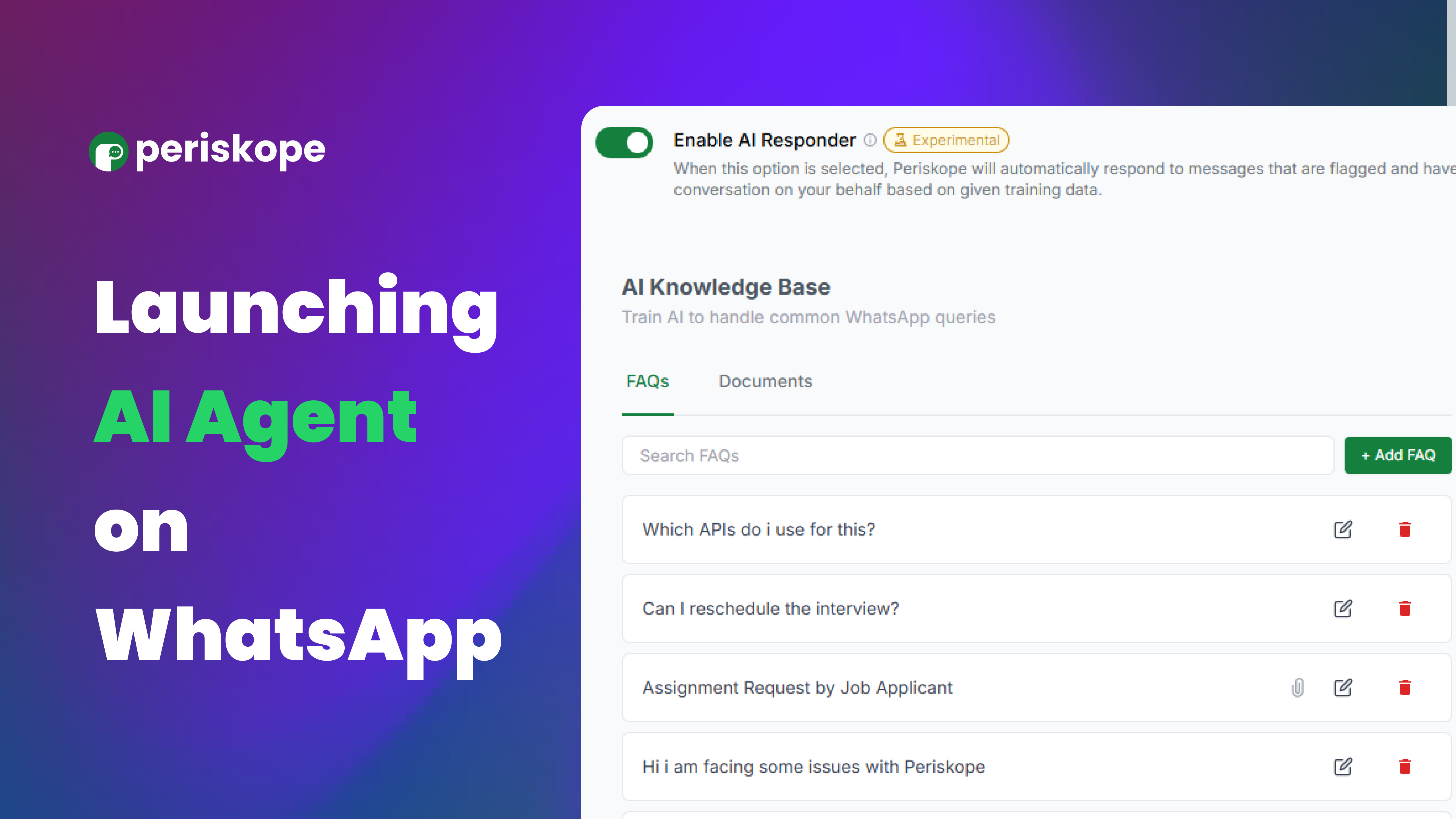 We’re introducing the Periskope AI Agent, designed to help you respond to incoming queries automatically, reduce response time, and take load off your team.