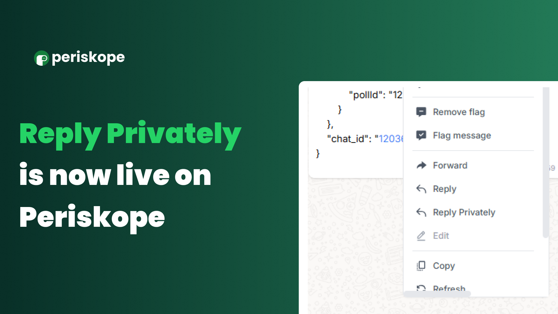 Reply Privately has been a valuable feature on WhatsApp, allowing users to seamlessly take conversations offline without disrupting group chats. We're thrilled to announce that this much-loved feature is now available on Periskope too!