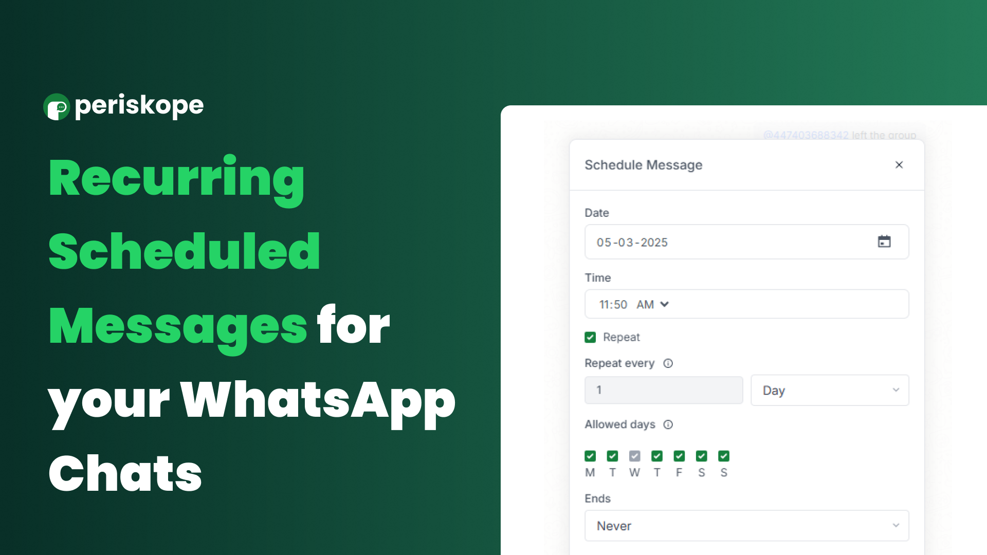 Read the Docs: https://docs.periskope.app/features/recurring-scheduled-messages
