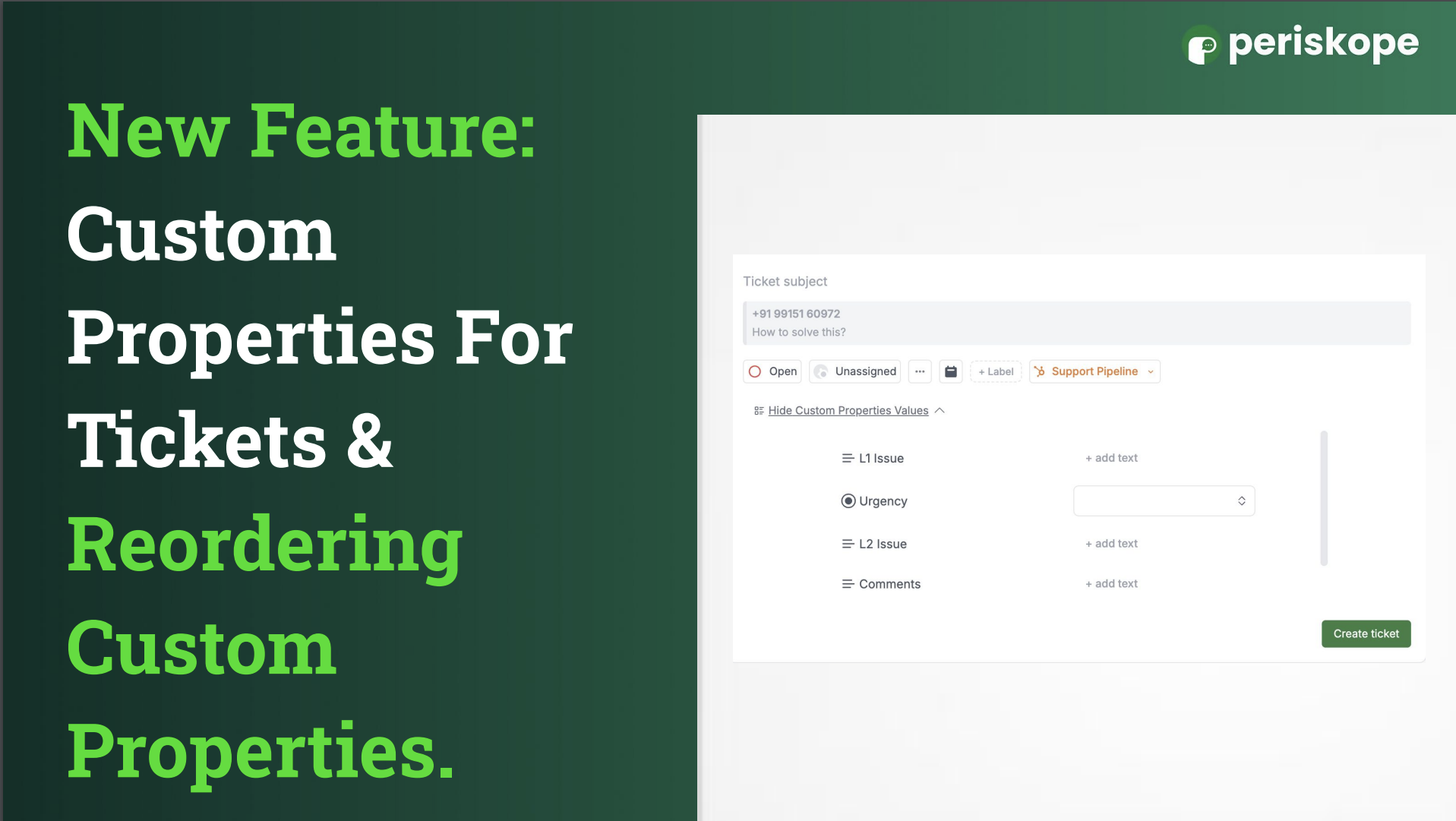 Simply navigate Setting and "Custom Properties" section under "Tickets" to add your custom properties. When creating a new ticket, you’ll be able to fill in the property values, ensuring all your data stays organised and accessible.